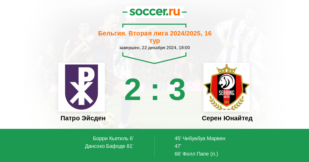 Патро Эйсден - Серен Юнайтед: обзор матча 22 декабря 2024