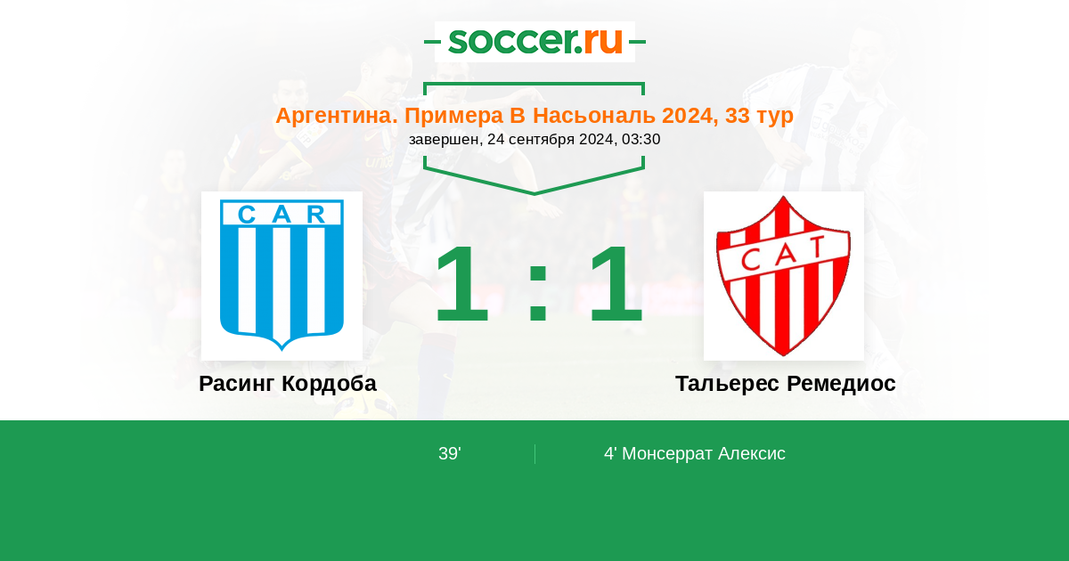 Расинг Кордоба - Тальерес Ремедиос: обзор матча 24 сентября 2024