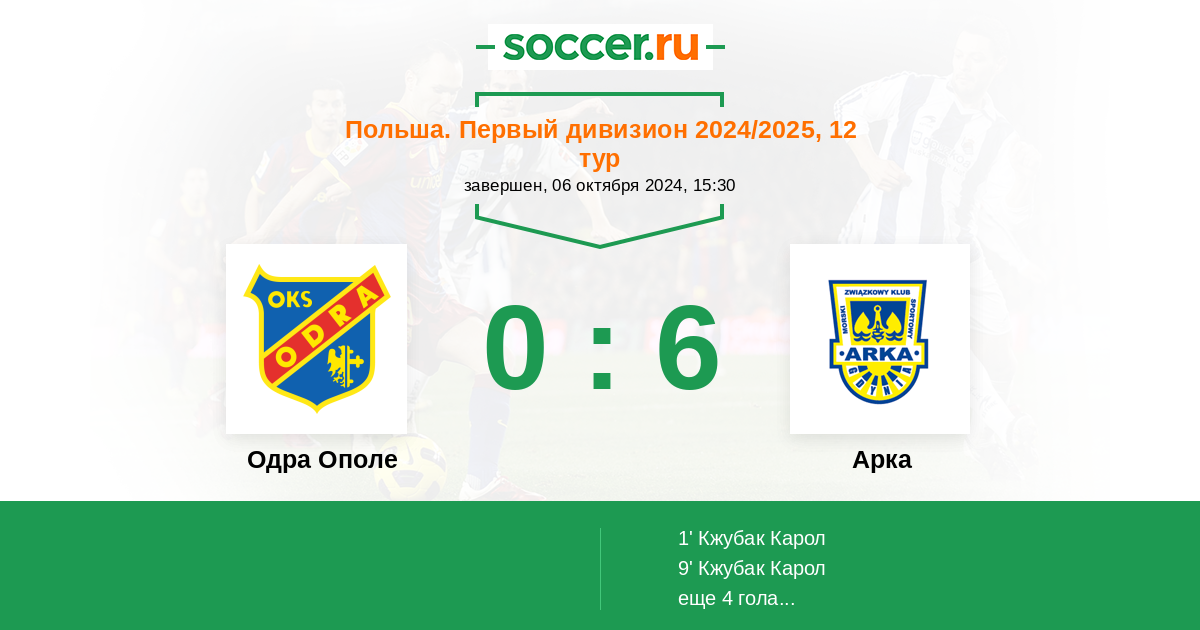 Одра Ополе - Арка: обзор матча 6 октября 2024