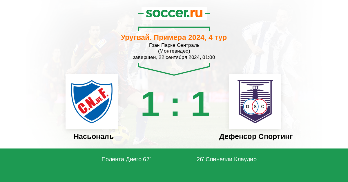 Насьональ - Дефенсор Спортинг: обзор матча 22 сентября 2024