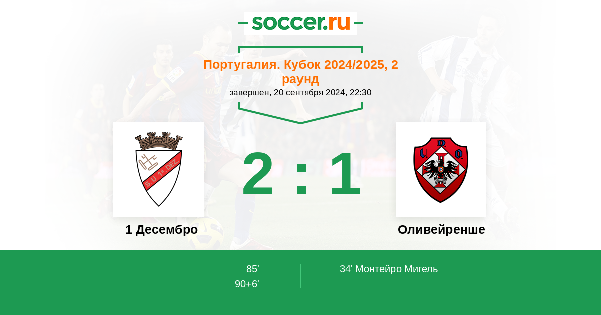1 Десембро - Оливейренше: обзор матча 20 сентября 2024