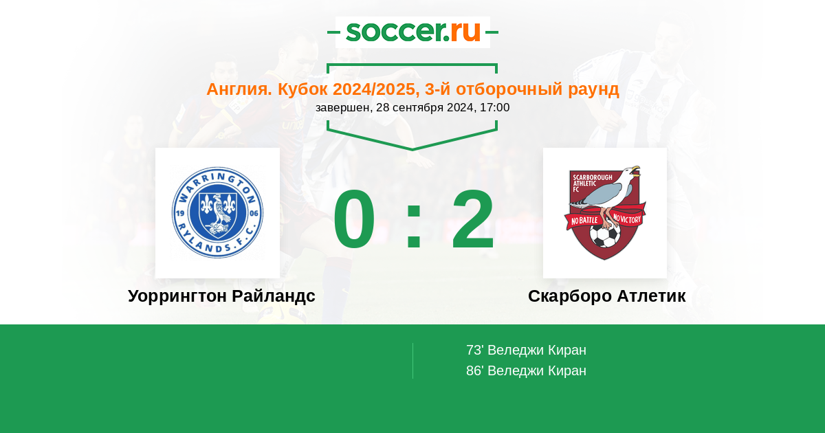 Уоррингтон Райландс - Скарборо Атлетик: обзор матча 28 сентября 2024