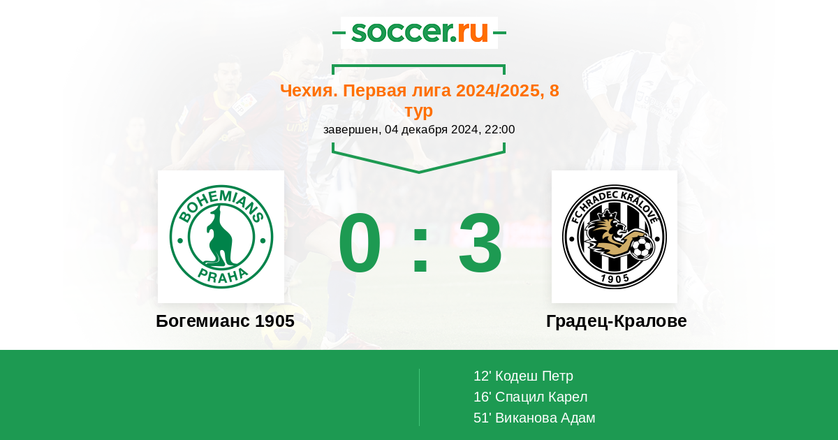 Богемианс 1905 - Градец-Кралове: обзор матча 4 декабря 2024