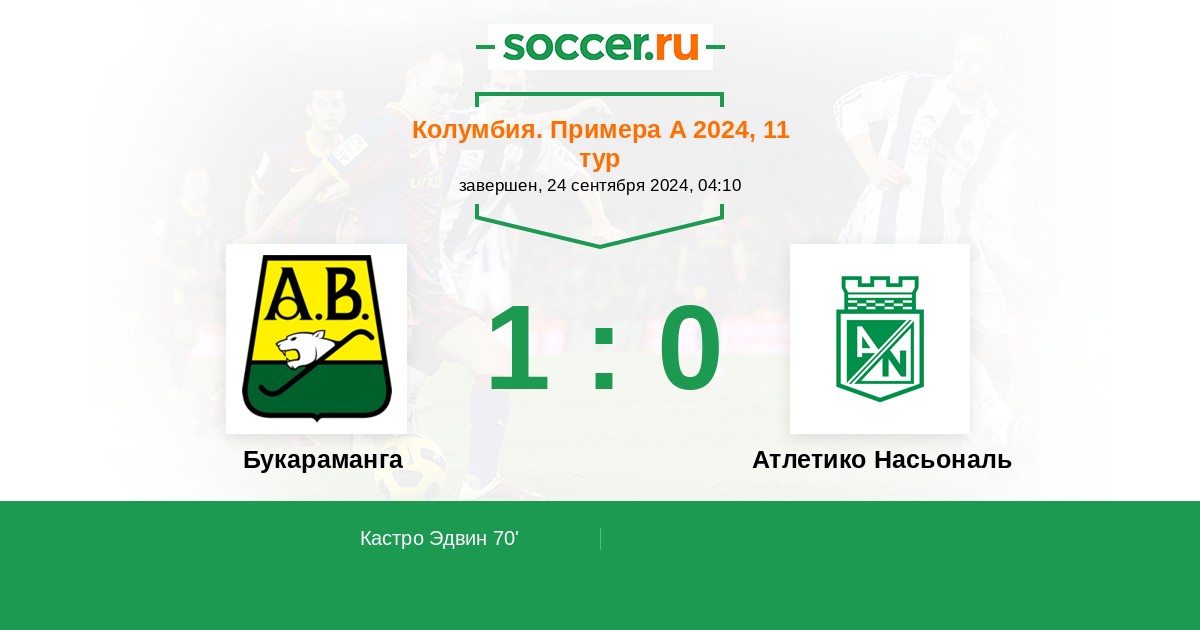 Букараманга - Атлетико Насьональ: обзор матча 24 сентября 2024