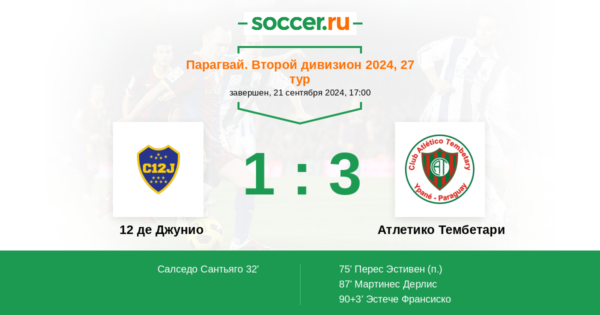 12 де Джунио - Атлетико Тембетари: обзор матча 21 сентября 2024