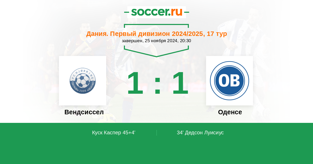 Вендсиссел - Оденсе: обзор матча 25 ноября 2024