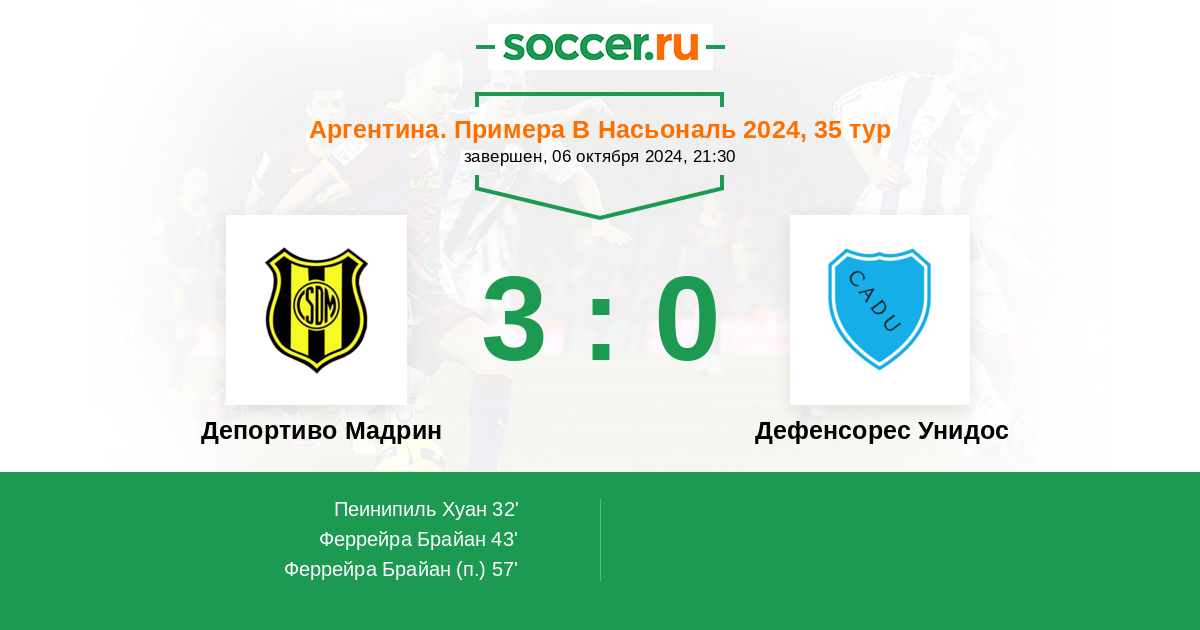 Депортиво Мадрин - Дефенсорес Унидос: обзор матча 6 октября 2024