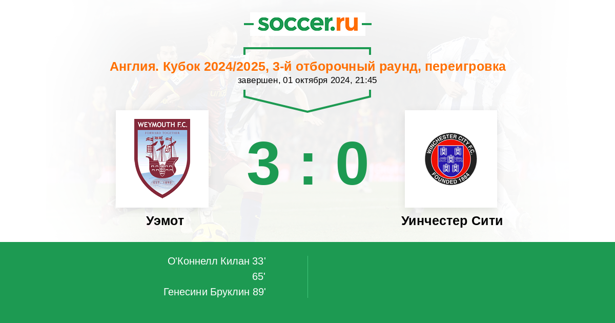 Уэмот - Уинчестер Сити: обзор матча 1 октября 2024