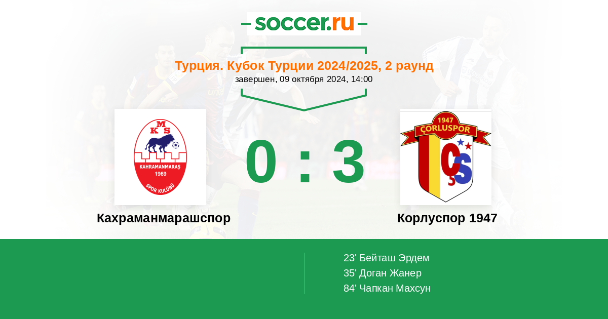 Кахраманмарашспор - Корлуспор 1947: обзор матча 9 октября 2024
