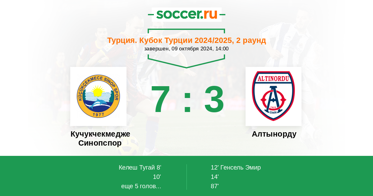 Кучукчекмедже Синопспор - Алтынорду: обзор матча 9 октября 2024