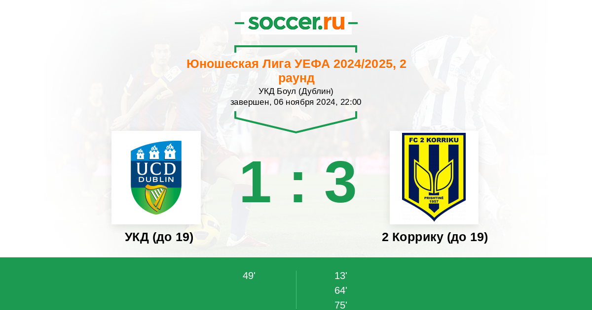 УКД (до 19) - 2 Коррику (до 19): обзор матча 6 ноября 2024