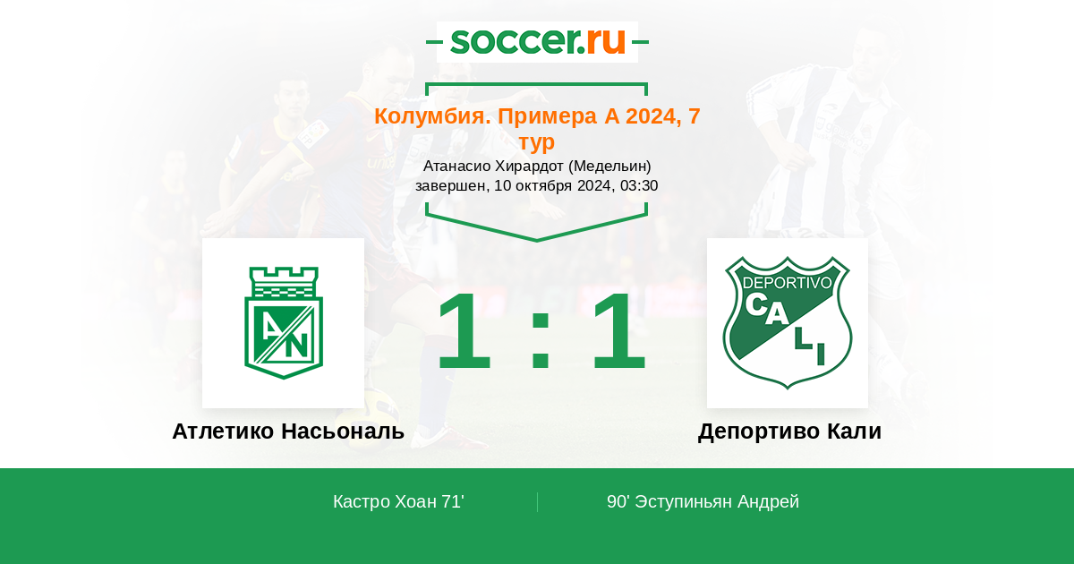 Атлетико Насьональ - Депортиво Кали: обзор матча 10 октября 2024