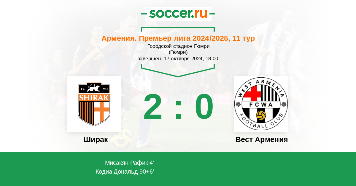 Ширак - Вест Армения: обзор матча 17 октября 2024