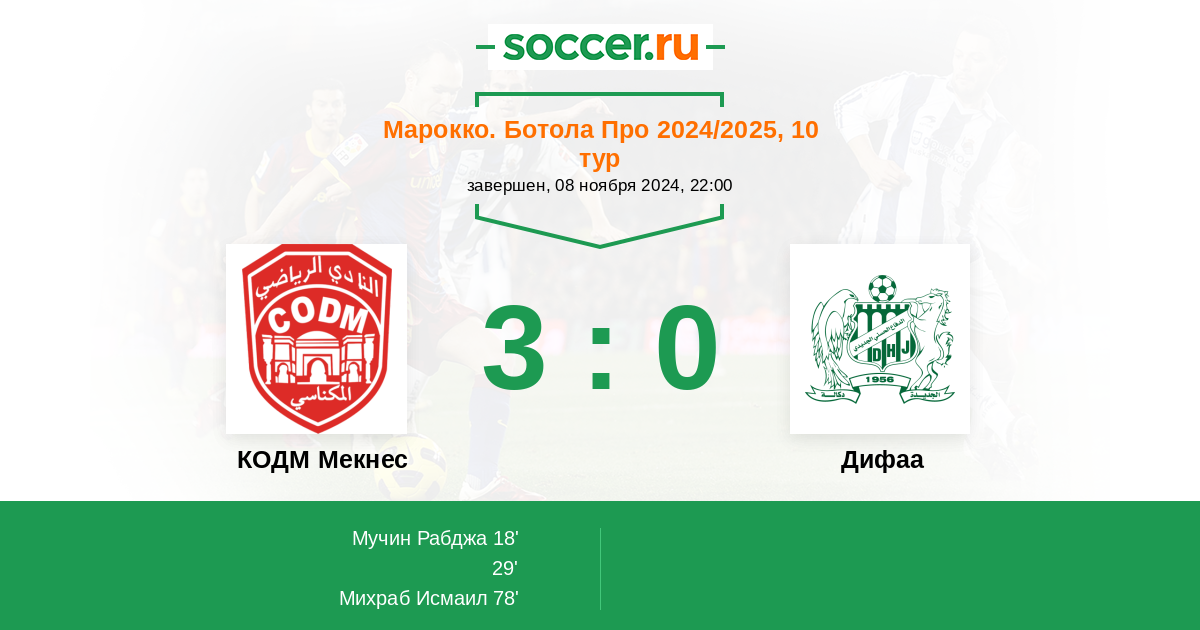 КОДМ Мекнес - Дифаа: обзор матча 8 ноября 2024