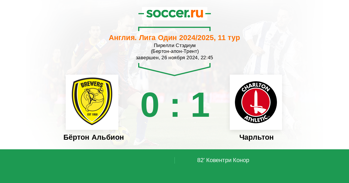Бёртон Альбион - Чарльтон: обзор матча 26 ноября 2024