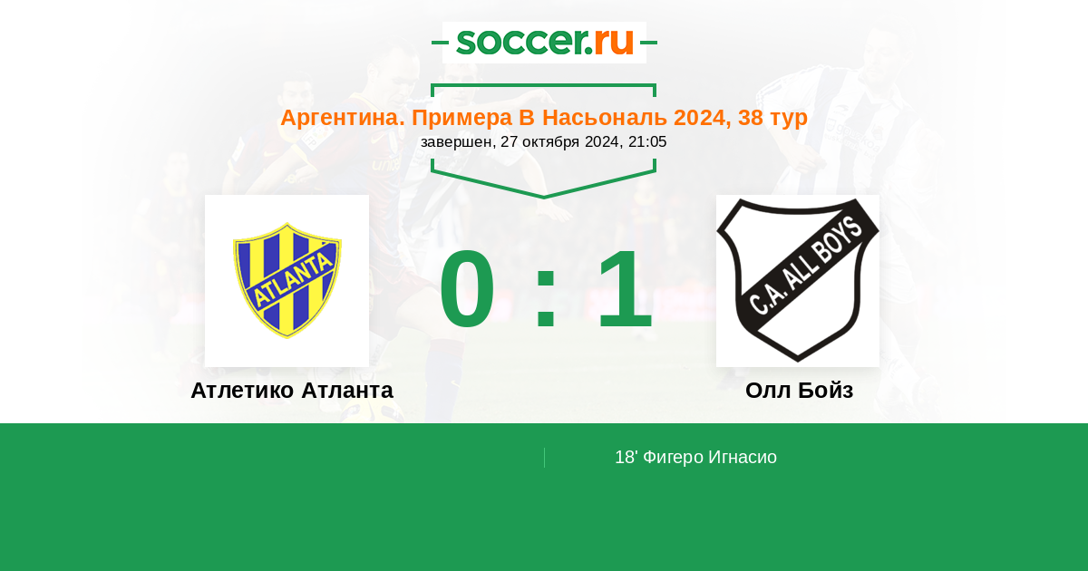Атлетико Атланта - Олл Бойз: обзор матча 27 октября 2024