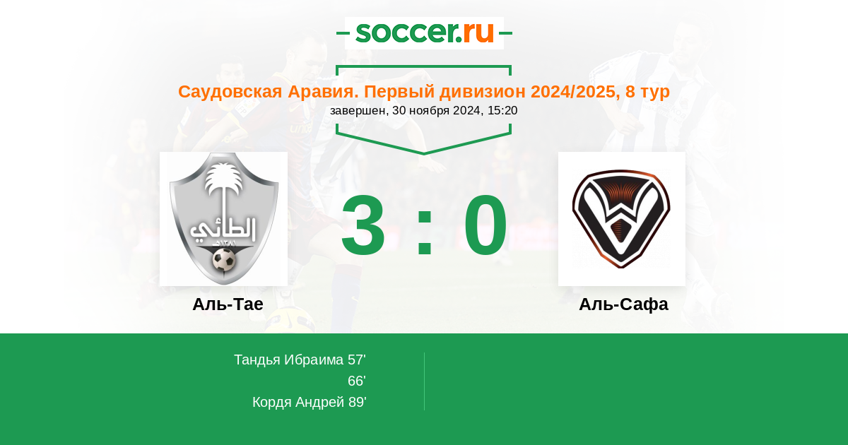 Аль-Тае - Аль-Сафа: обзор матча 30 ноября 2024