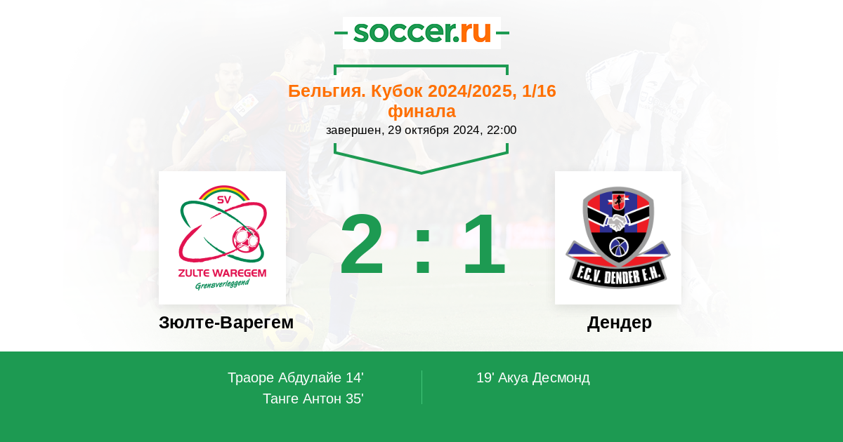 Зюлте-Варегем - Дендер: обзор матча 29 октября 2024