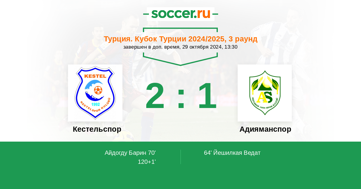 Кестельспор - Адияманспор : обзор матча 29 октября 2024