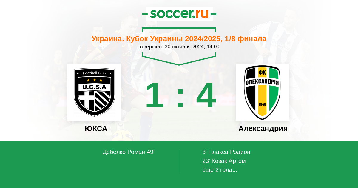 ЮКСА - Александрия: обзор матча 30 октября 2024