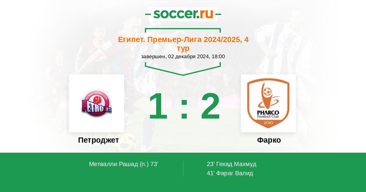 Петроджет - Фарко: обзор матча 2 декабря 2024