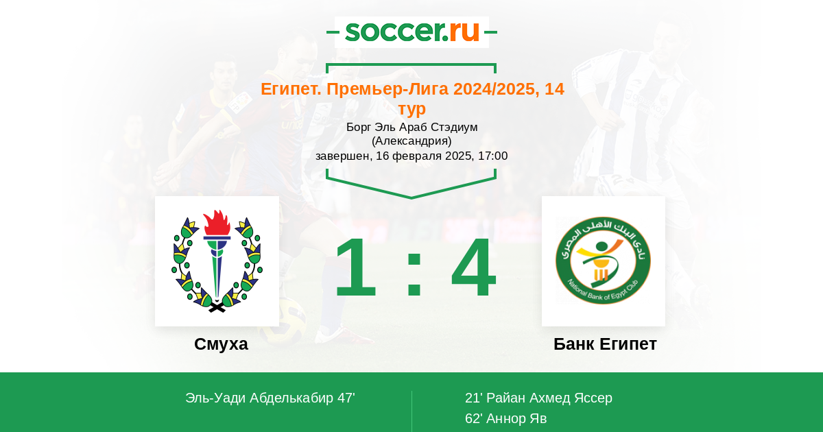 Смуха - Банк Египет: обзор матча 16 февраля 2025
