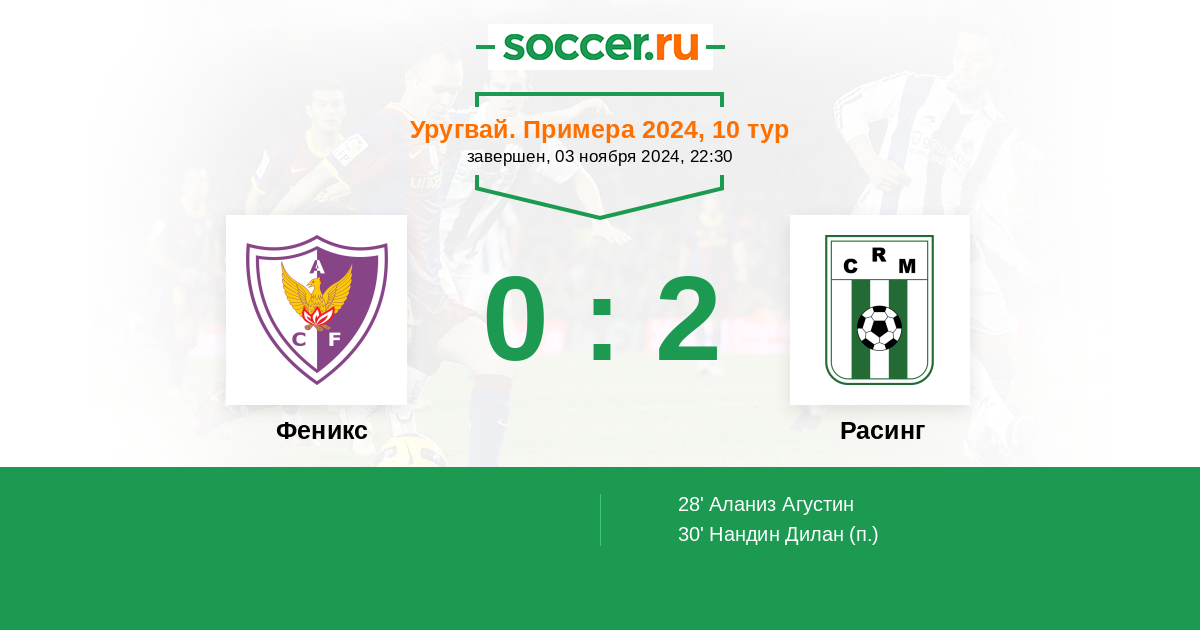 Феникс - Расинг: обзор матча 3 ноября 2024