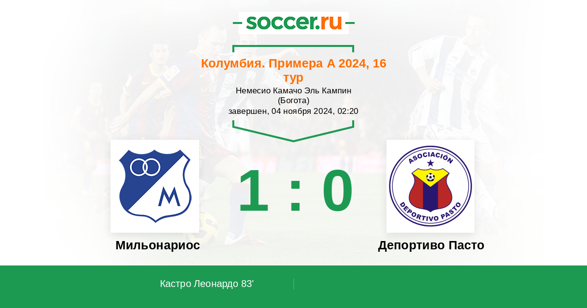 Мильонариос - Депортиво Пасто: обзор матча 4 ноября 2024