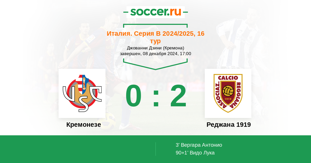 Кремонезе - Реджана 1919: обзор матча 8 декабря 2024