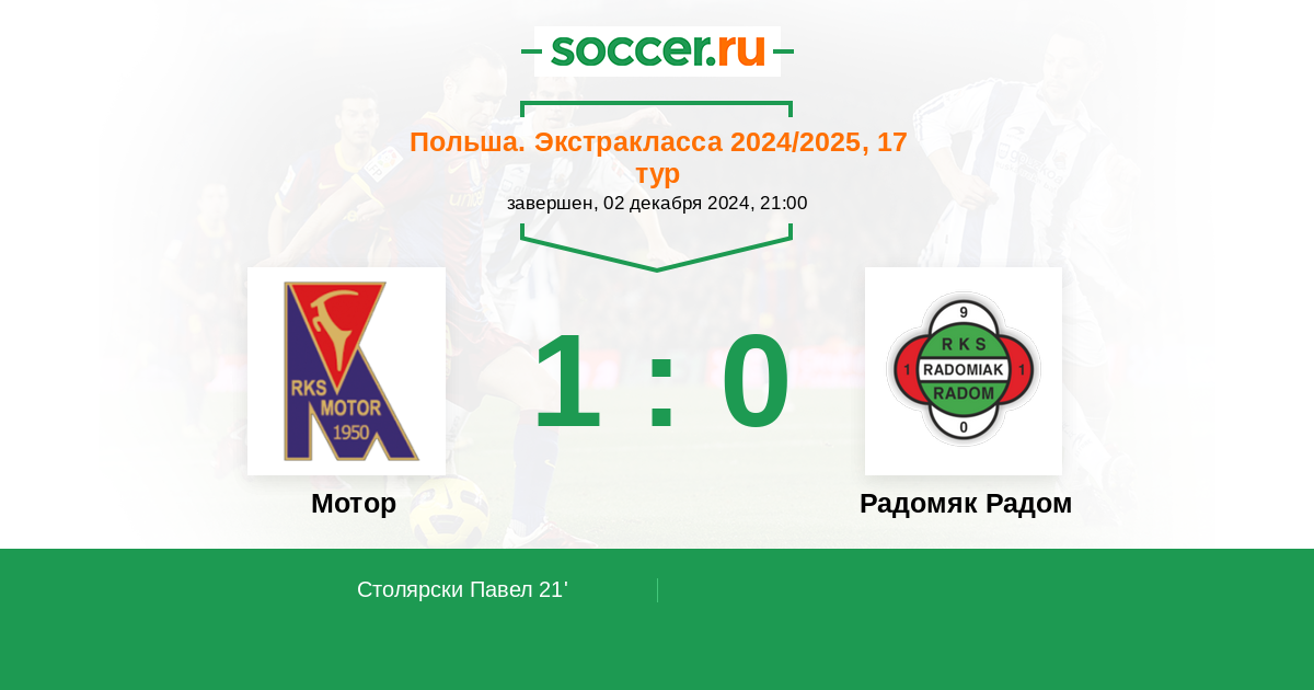 Мотор - Радомяк Радом: обзор матча 2 декабря 2024