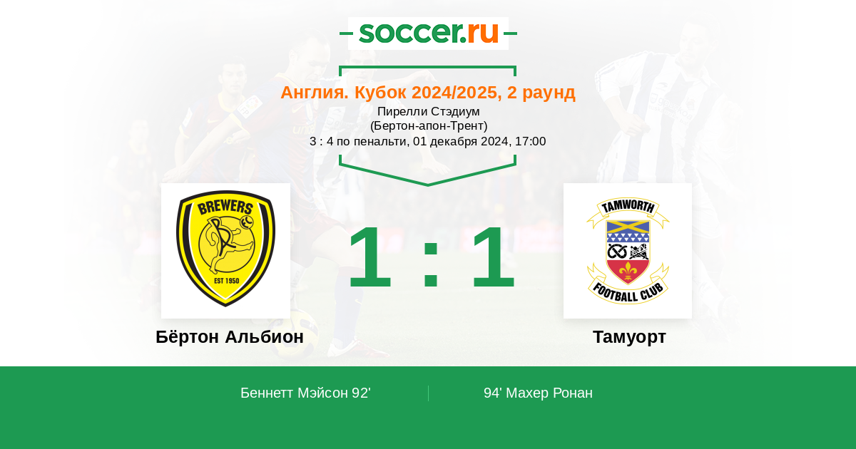 Бёртон Альбион - Тамуорт: обзор матча 1 декабря 2024