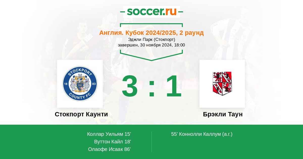 Стокпорт Каунти - Брэкли Таун: обзор матча 30 ноября 2024