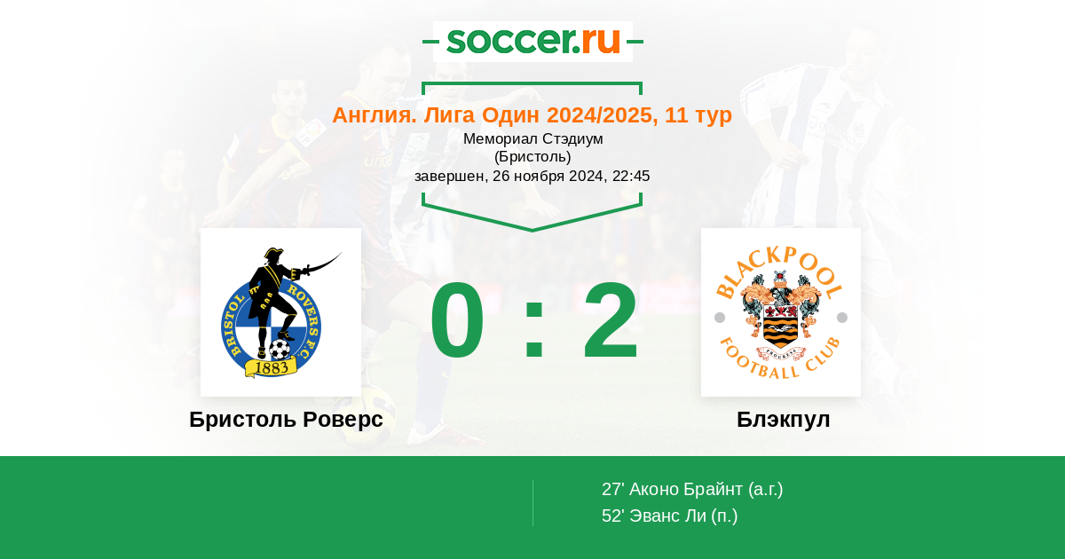 Бристоль Роверс - Блэкпул: обзор матча 26 ноября 2024