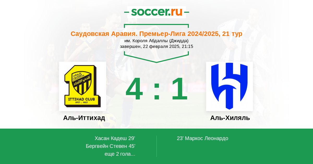 Аль-Иттихад - Аль-Хиляль: обзор матча 22 февраля 2025