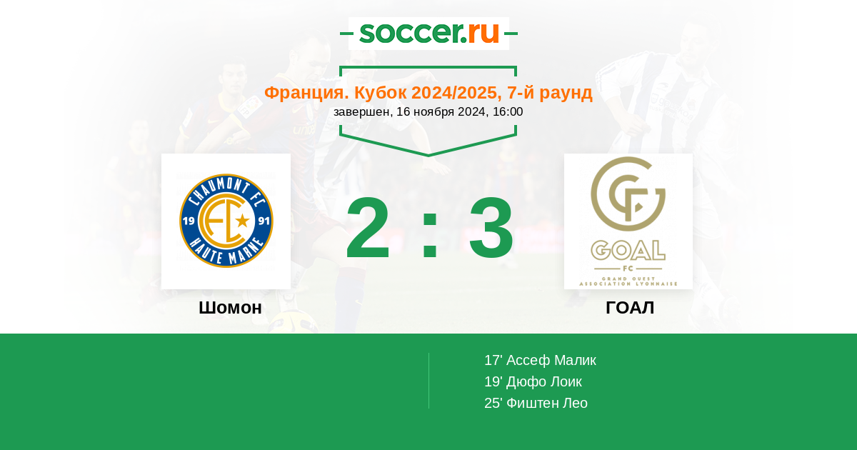 Шомон - ГОАЛ: обзор матча 16 ноября 2024