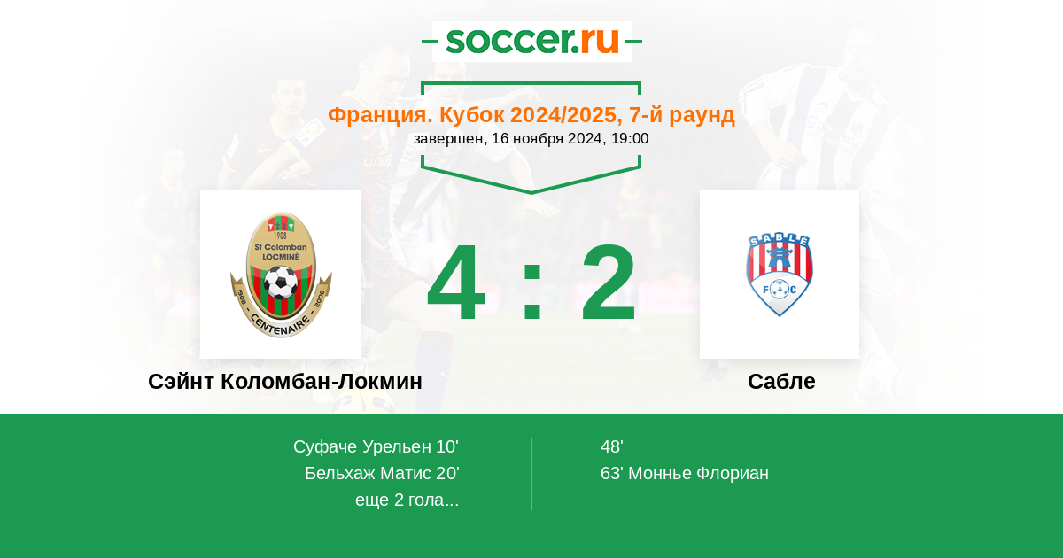 Сэйнт Коломбан-Локмин - Сабле: обзор матча 16 ноября 2024