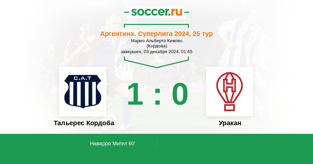 Тальерес Кордоба - Уракан: обзор матча 3 декабря 2024