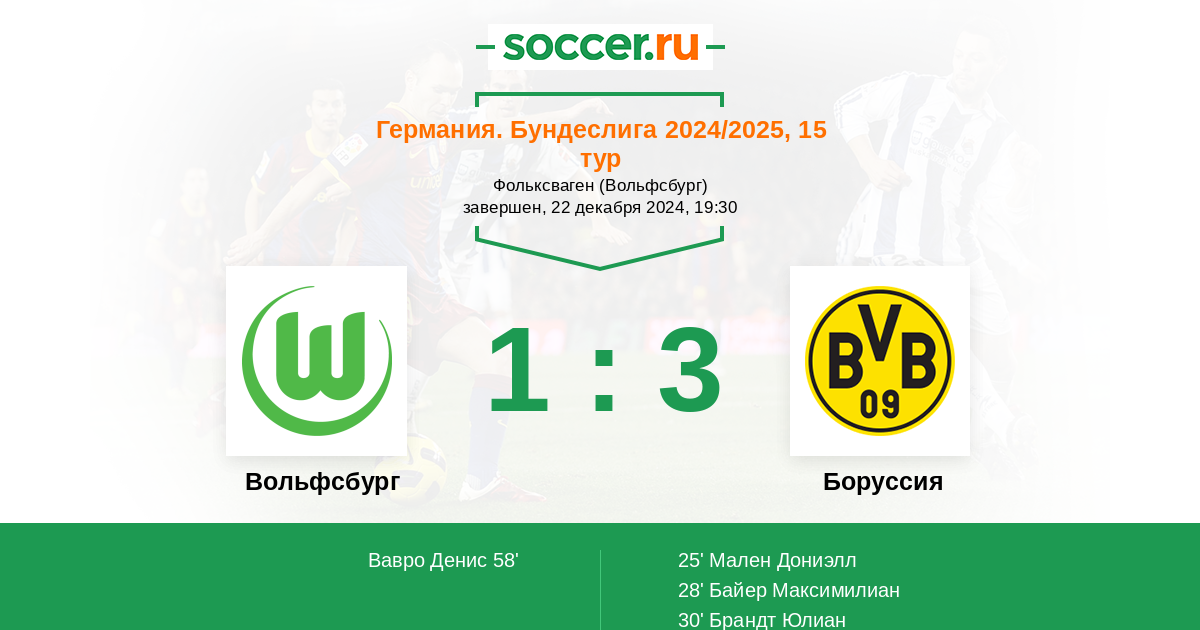 Вольфсбург - Боруссия: обзор матча 22 декабря 2024