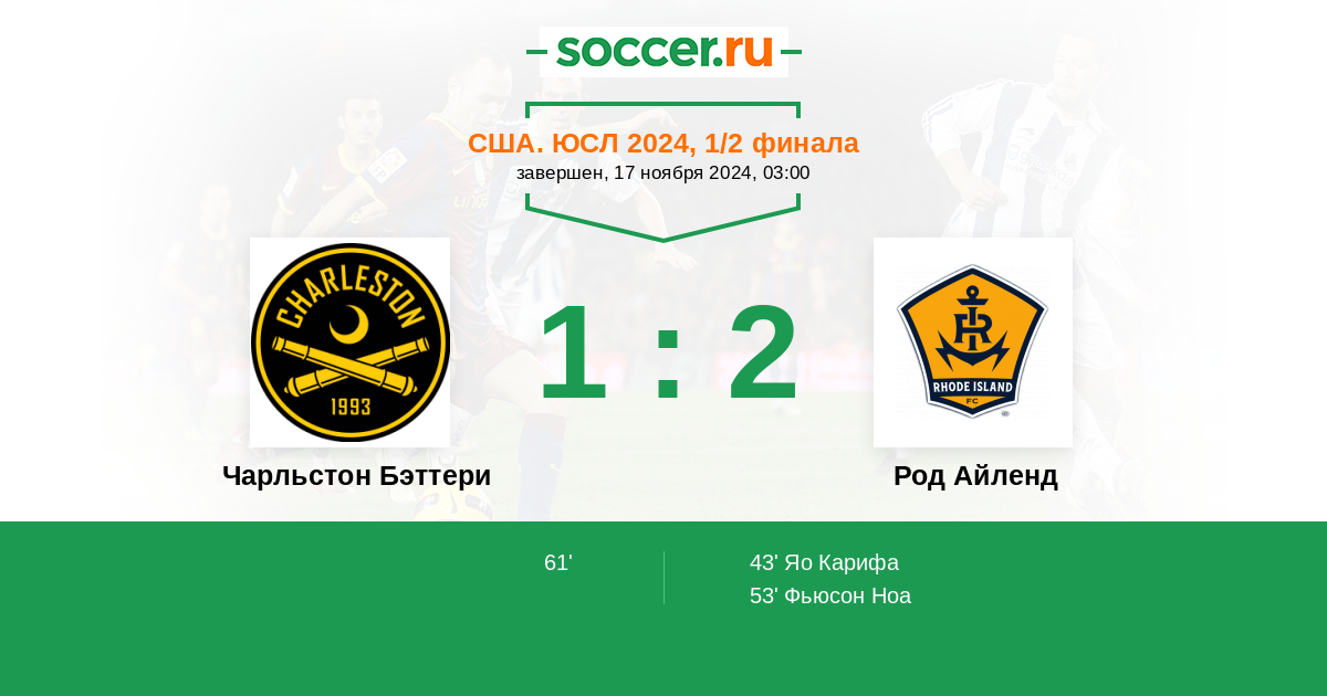 Чарльстон Бэттери - Род Айленд: обзор матча 17 ноября 2024