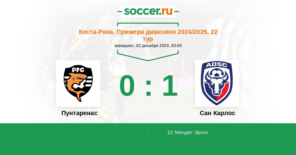 Пунтаренас - Сан Карлос: обзор матча 2 декабря 2024