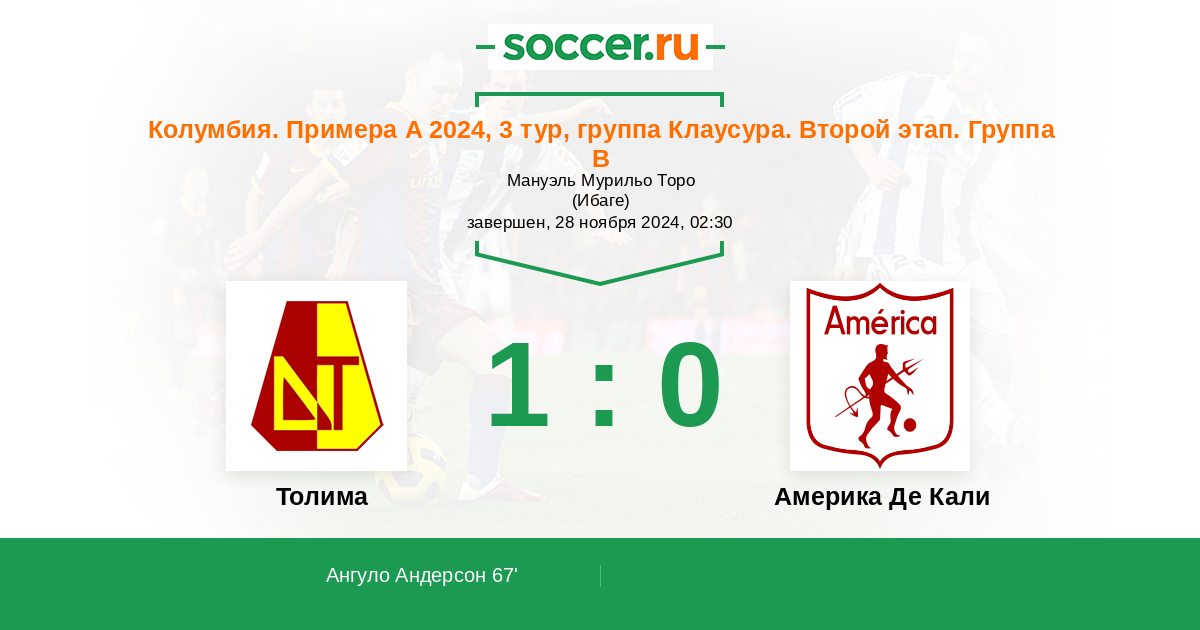 Толима - Америка Де Кали: обзор матча 28 ноября 2024