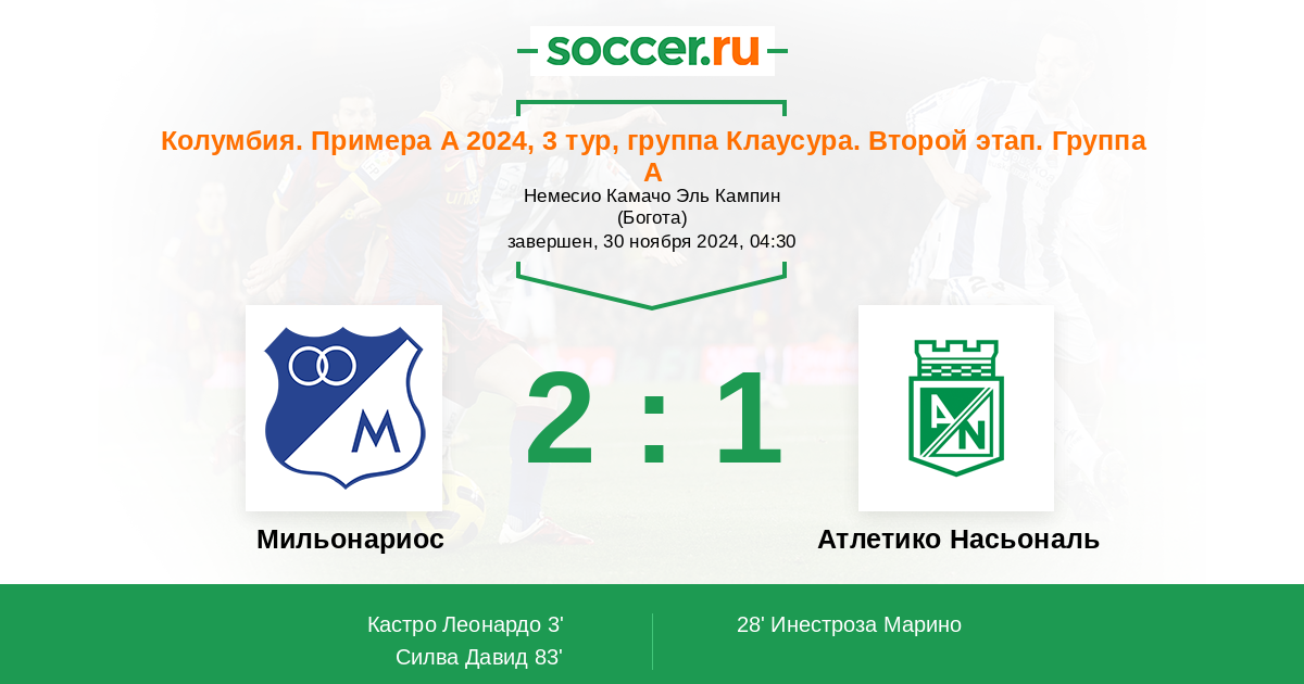 Мильонариос - Атлетико Насьональ: обзор матча 30 ноября 2024