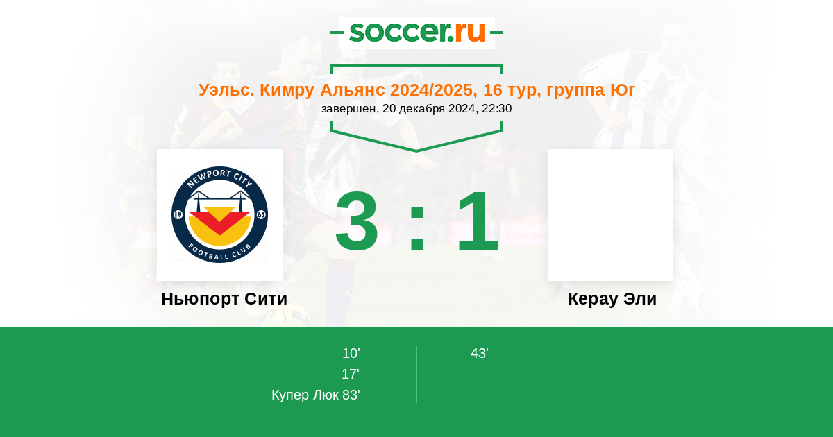 Ньюпорт Сити - Керау Эли: обзор матча 20 декабря 2024