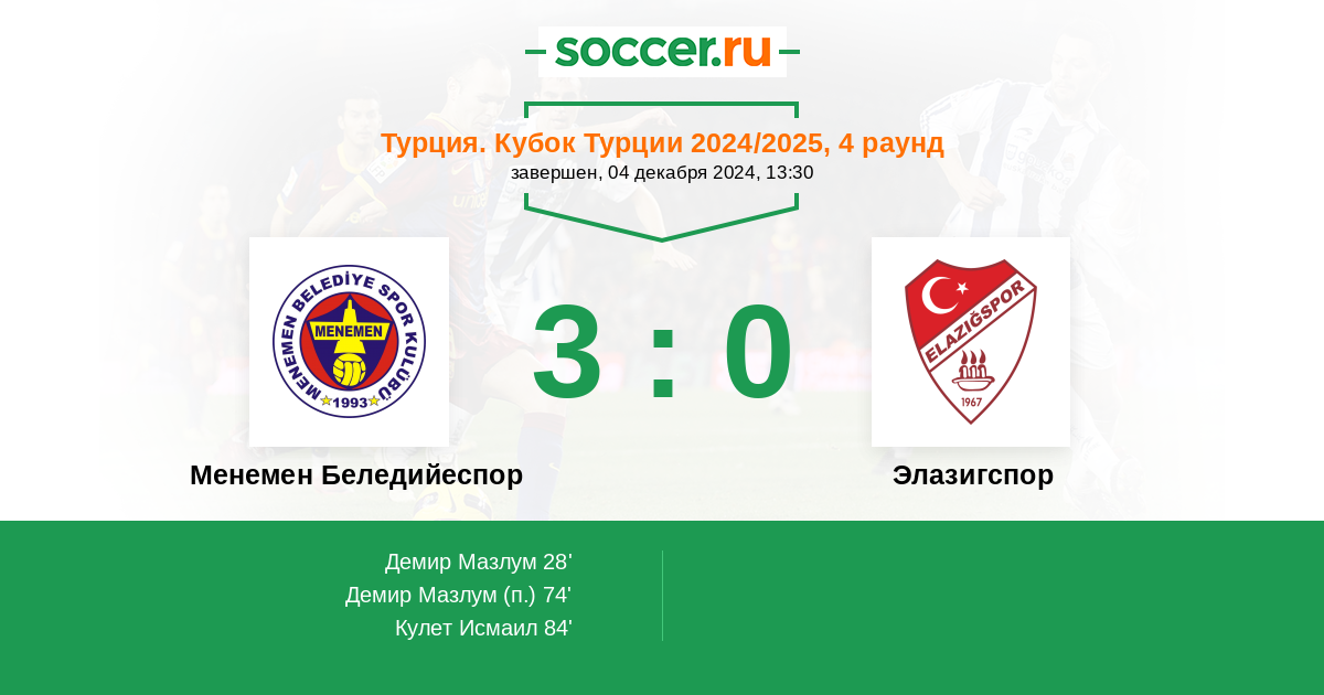 Менемен Беледийеспор - Элазигспор: обзор матча 4 декабря 2024