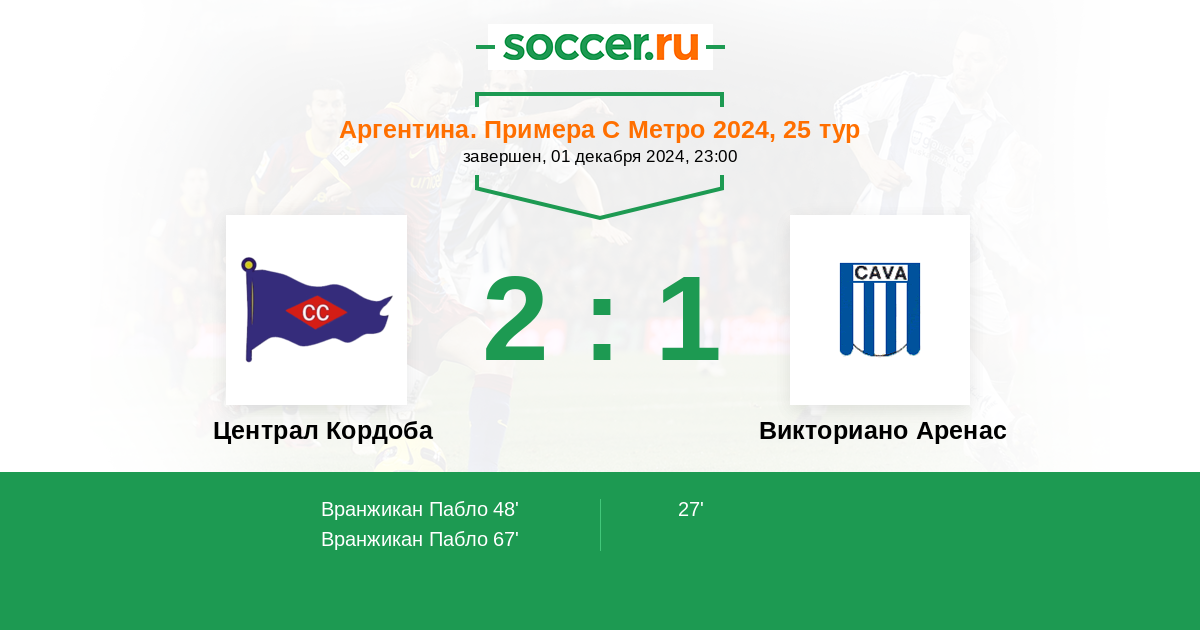 Централ Кордоба - Викториано Аренас: обзор матча 1 декабря 2024