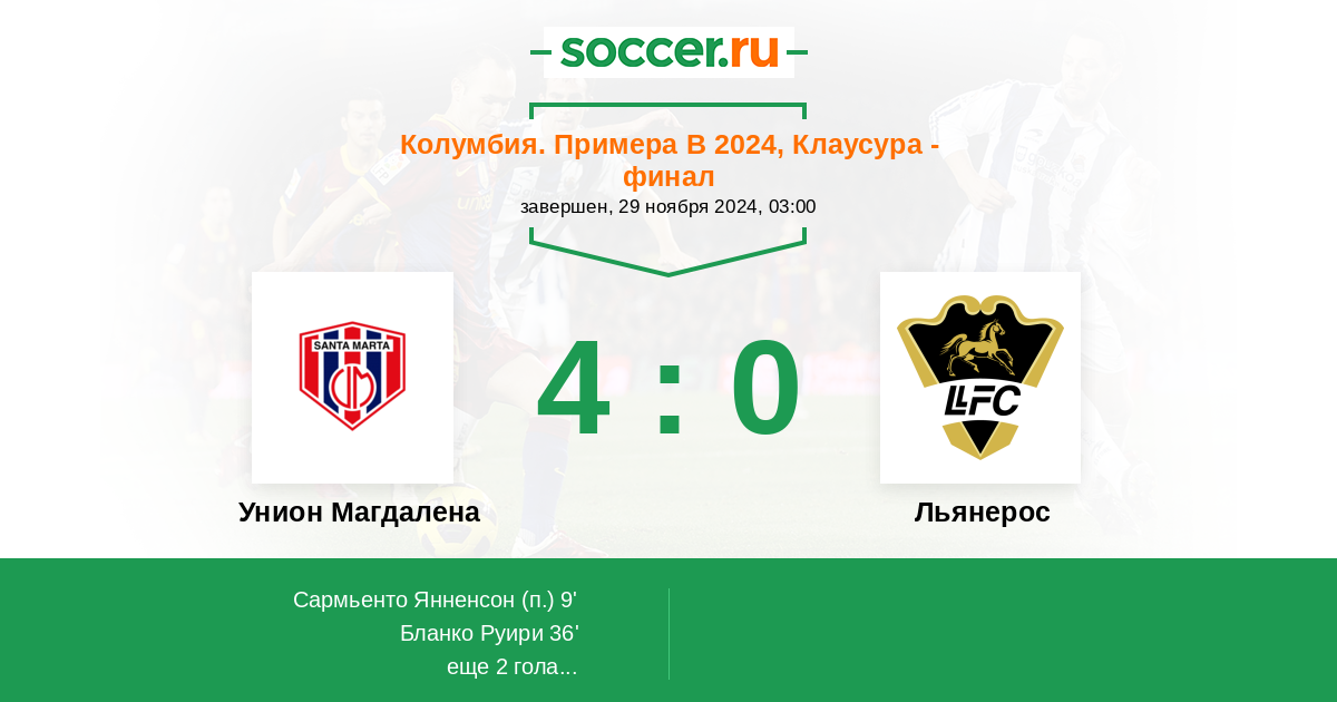 Унион Магдалена - Льянерос: обзор матча 29 ноября 2024
