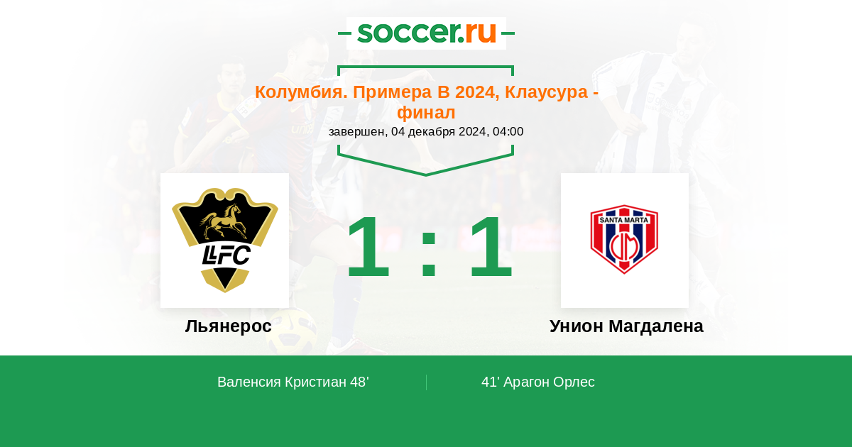 Льянерос - Унион Магдалена: обзор матча 4 декабря 2024