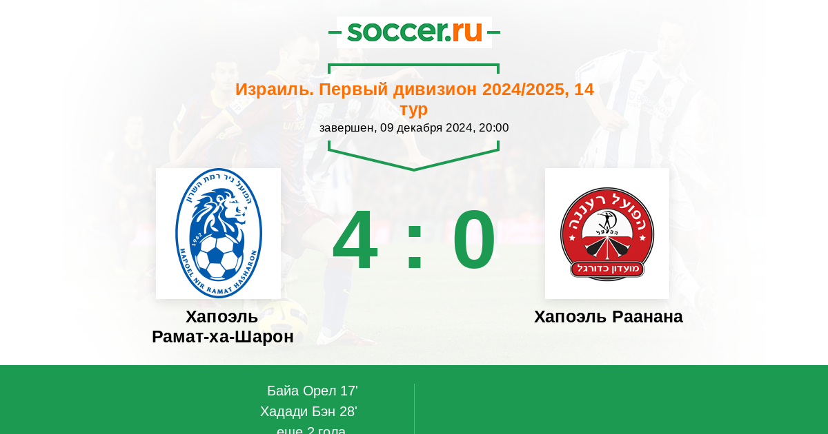 Хапоэль Рамат-ха-Шарон - Хапоэль Раанана: обзор матча 9 декабря 2024