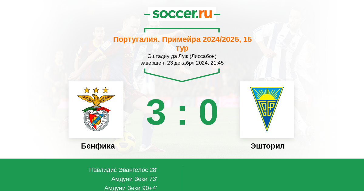 Бенфика - Эшторил: обзор матча 23 декабря 2024