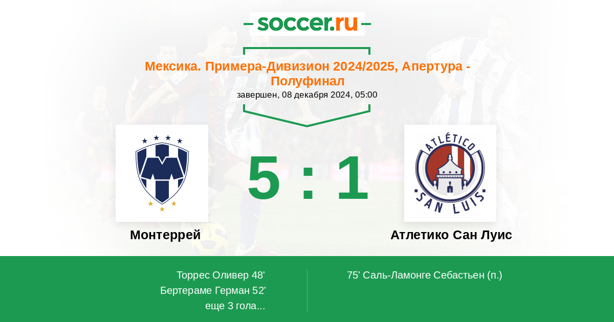Монтеррей - Атлетико Сан Луис: обзор матча 8 декабря 2024
